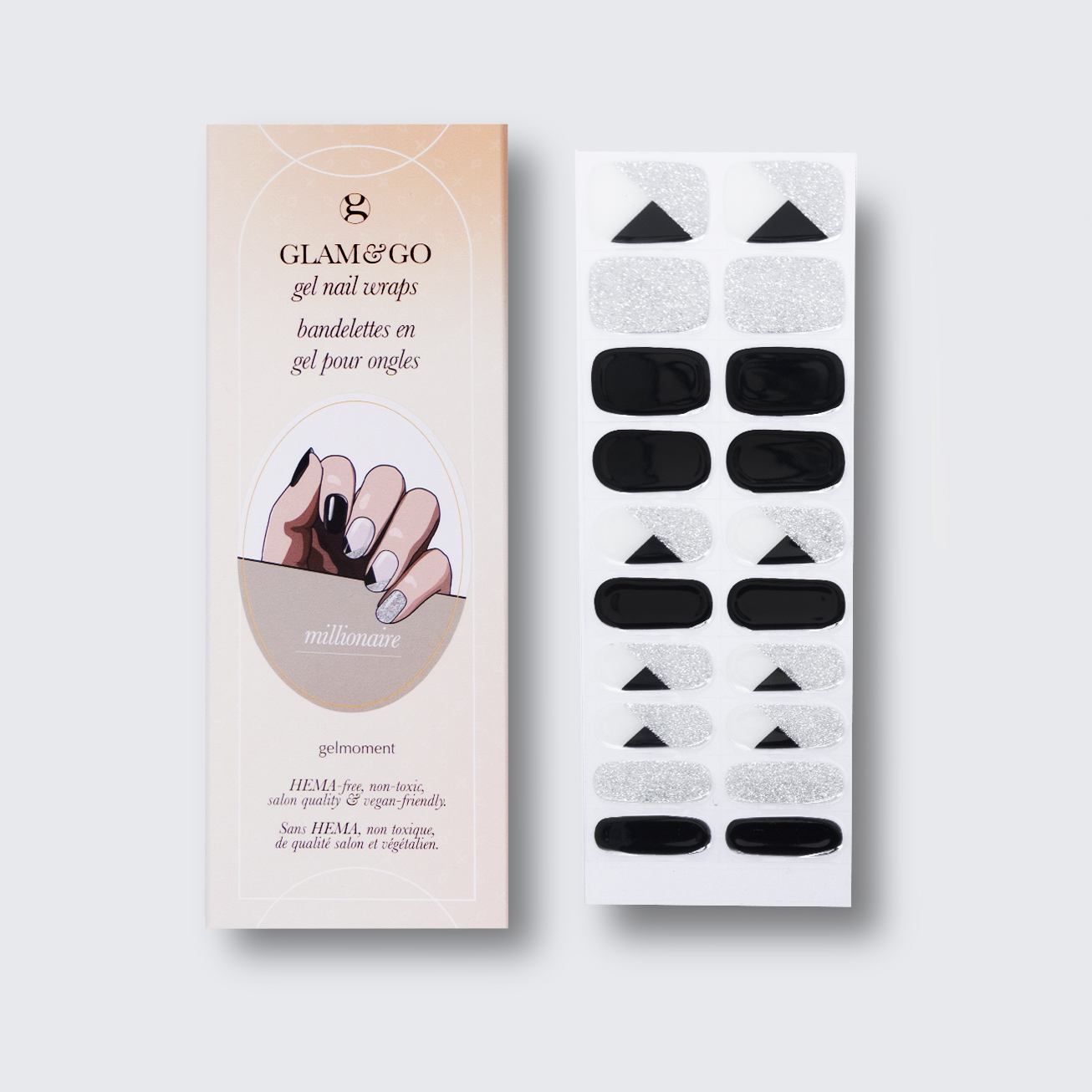 Plus, not only do GLAM & GO gel nail wraps provide the same glossy finish you know and love from our regular gel polish, but they are also HEMA FREE and have a wear time of up to 14+ days.
